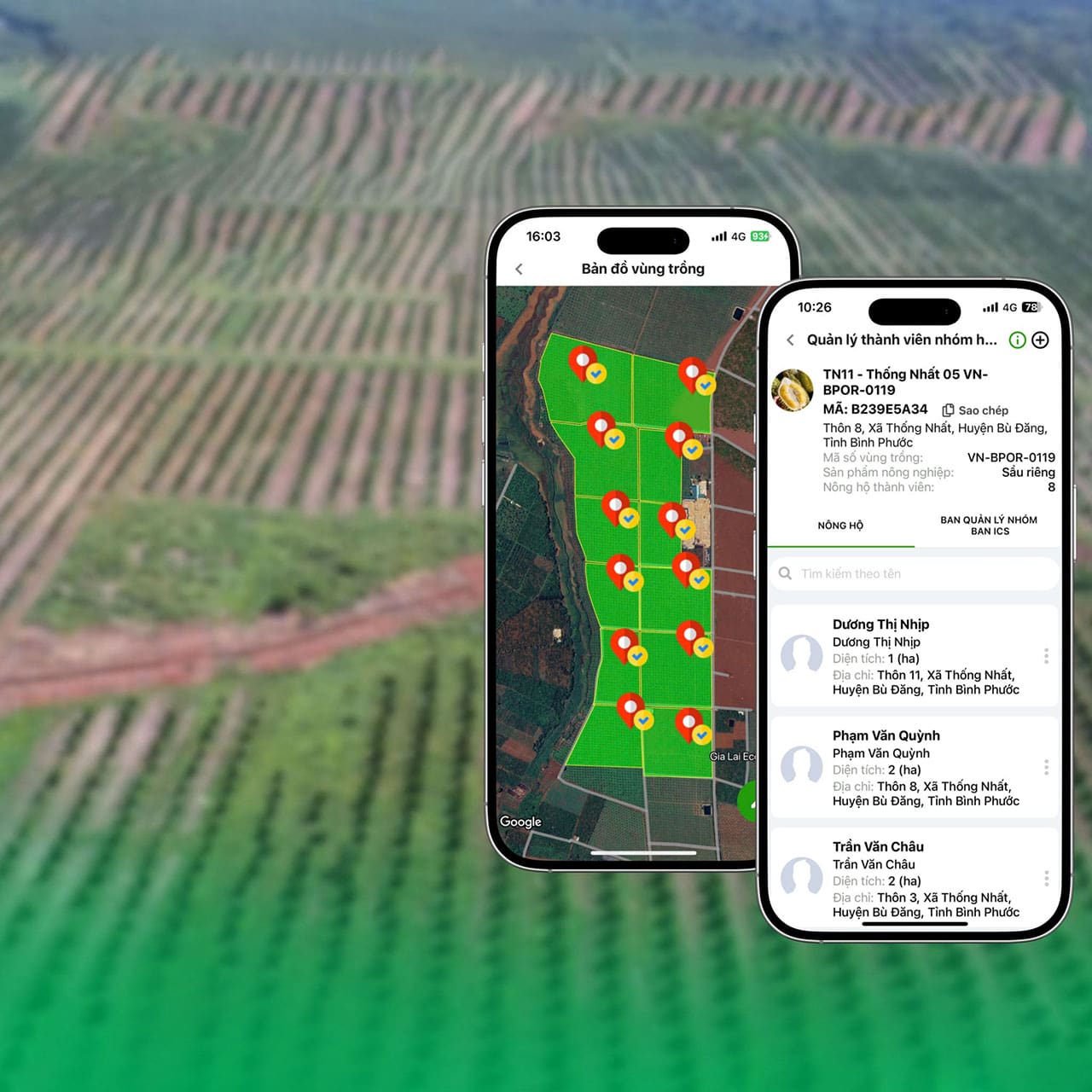 Thiên Nam áp dụng hệ thống quản lý dữ liệu tập trung để thay thế hoàn toàn phương pháp ghi chép thủ công. Thông qua nhật ký canh tác điện tử, mọi hoạt động từ xuống giống, chăm sóc đến thu hoạch đều được cập nhật và lưu trữ trên nền tảng số, giúp chuẩn hóa quy trình và đảm bảo tính chính xác của dữ liệu đầu vào.